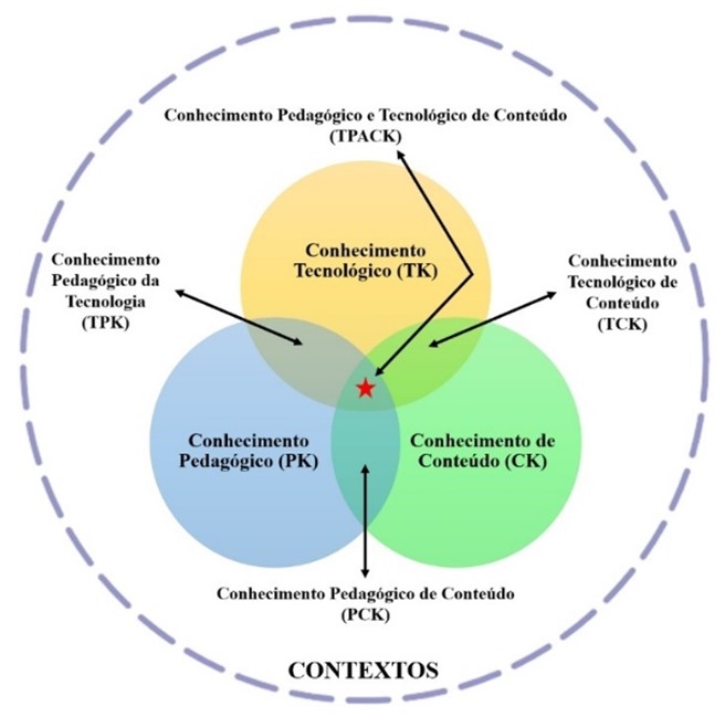 Isso requer uma formação em que se discuta e vivencie o uso das TDIC, suas potencialidades e limitações na educação, integrando os conhecimentos necessários à prática docente com tecnologia, como preconiza o quadro teórico do Conhecimento Tecnológico Pedagógico do Conteúdo, em inglês, Technological Pedagogical Content Knowledge (TPACK).