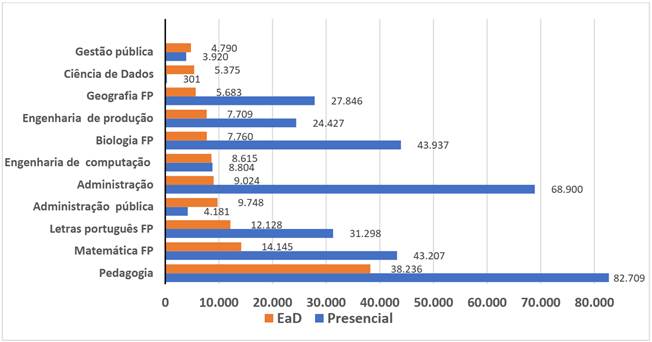 Figura 5 Os dez maiores cursos a distância nas IES públicas federais e estaduais em 2021