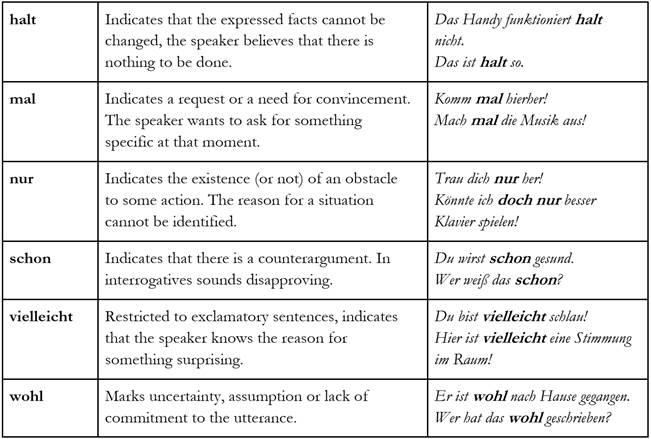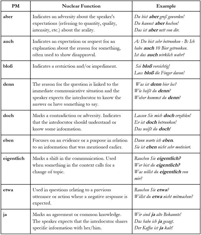 MODAL PARTICLES AND THE DESCRIPTIVE TABLE