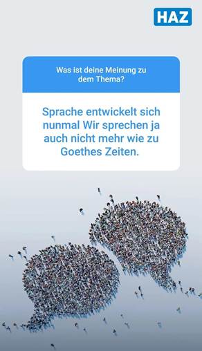 In the second example, the Hannoversche Allgemeine Zeitung asks in the stories about reader's opinion on the use of neutral language in German and a follower responds: "Sprache entwickelt sich nunmal, wir sprechen ja auch nicht mehr wie Goethes Zeiten"7. The follower uses the MP ja because of its nuclear function of agreement and shared knowledge, i.e., as a convincing argument: as everyone knows, or must know, we no longer speak the same language as in Goethe's time, because language changes constantly. Therefore, the MP ja agreement function is used to support an opinion through an argument that is (should be) a common knowledge shared by all newspaper readers.