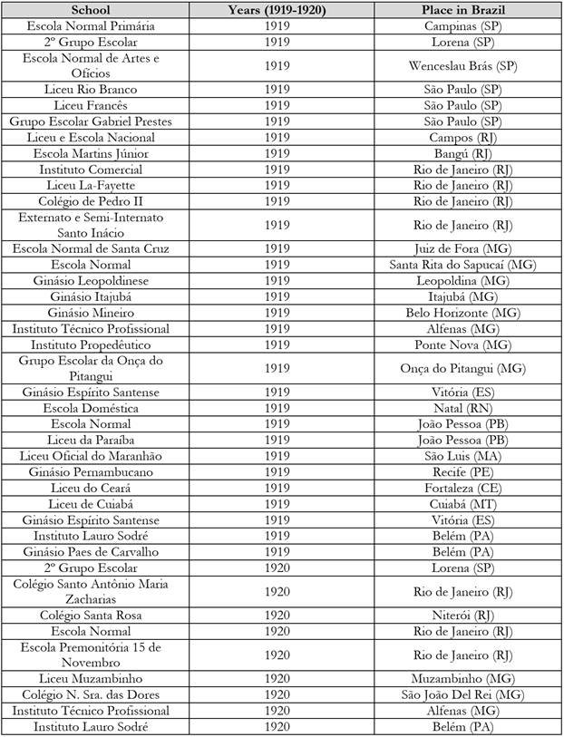 Box 5 Support for schools in different locations in Brazil (1919-1920)