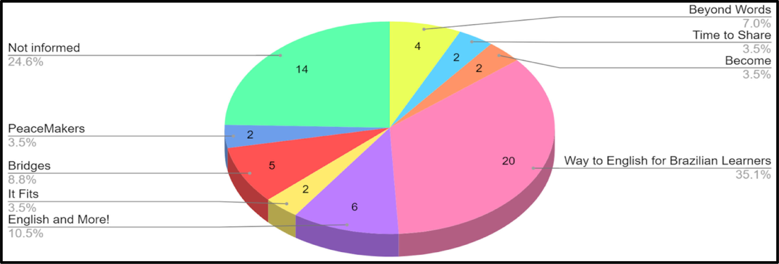 The data obtained from the website data are summarized in Graph 1, presenting the percentage and number of times each textbook was mentioned. It is important to note that the category "Not informed" represents only the initial years of the elementary level (first to fifth grade) and did not include a specific selection of an English language textbook.