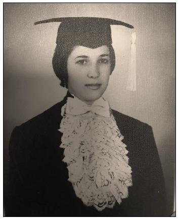 A professora Roseni, durante a apresentação das fotos, se ateve ao retrato abaixo, de sua coleção de grau, que aconteceu na mesma capela que a da filha, porém 23 anos antes. Na foto, a professora está vestida com beca e usando o capelo, seu olhar é sereno e delicado. Roseni disse que antes da cerimônia formal de colação de grau, foi celebrada uma missa em homenagem às formandas. Como estudava em um colégio de religiosas, as irmãs não permitiam que fossem realizados bailes de formaturas, decisão essa que desagradou um pouco a professora, uma vez que sua família era “festeira”. Não obstante, seus pais ofereceram um jantar aos familiares, após a colação de grau, em comemoração à conquista da filha. Outro ponto que a docente recordou em relação a este dia, foi o fato de sua mãe estar muito feliz e orgulhosa dela, pois ela de fato, agora, era professora assim como as tias.
