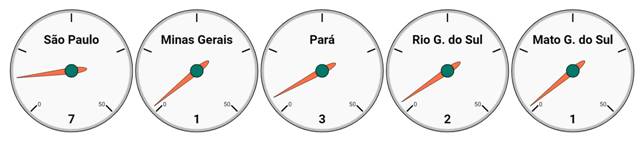 | BRASIL | 2 | 0 | 7 | 5 | 5 | 1 | 20 |