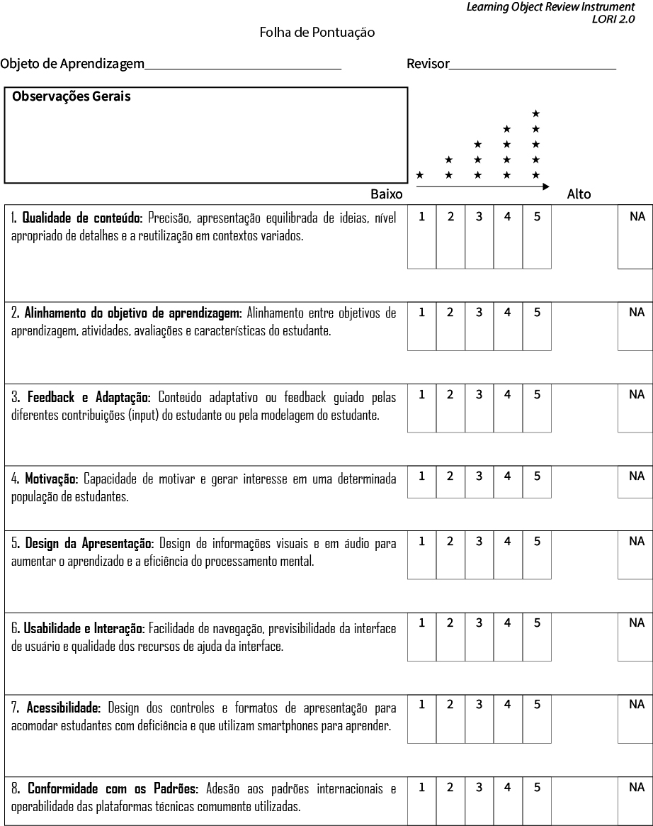 Figura 2 Versão adaptada para a língua portuguesa falada no Brasil do Learning Object Review Instrument (Lori)