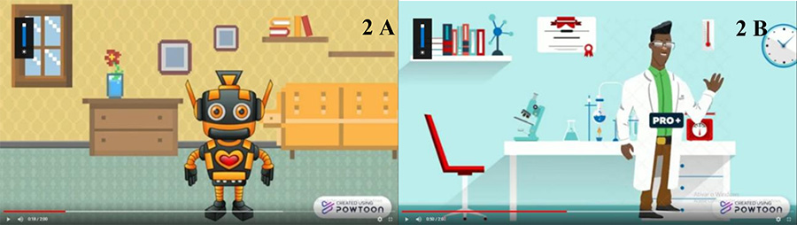 Para ofertar aos estudantes a experiência de estarem em um jogo, os personagens dos vídeos de contexto, foram utilizados para passar as informações e orientações das missões que os estudantes deveriam fazer. Na Figura 2 visualiza-se os personagens em cena.