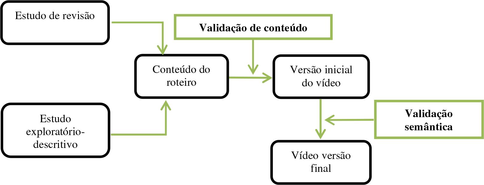 Para compor o público-alvo foram convidados estudantes do curso de Fisioterapia da UEPA, sendo incluídos alunos de qualquer faixa etária, independente de sexo, matriculados no 3º ou 4º ano do curso de Fisioterapia da UEPA. Foram excluídos alunos que tenham cursado graduação em Design. O estudo foi desenvolvido nas seguintes etapas ilustradas na figura 1: a- Revisão da literatura; b- Estudo exploratório-descritivo de competências; c- Produção de uma mídia audiovisual; dvalidação de conteúdo e semântica por juízes especialistas e pelo públicoalvo.