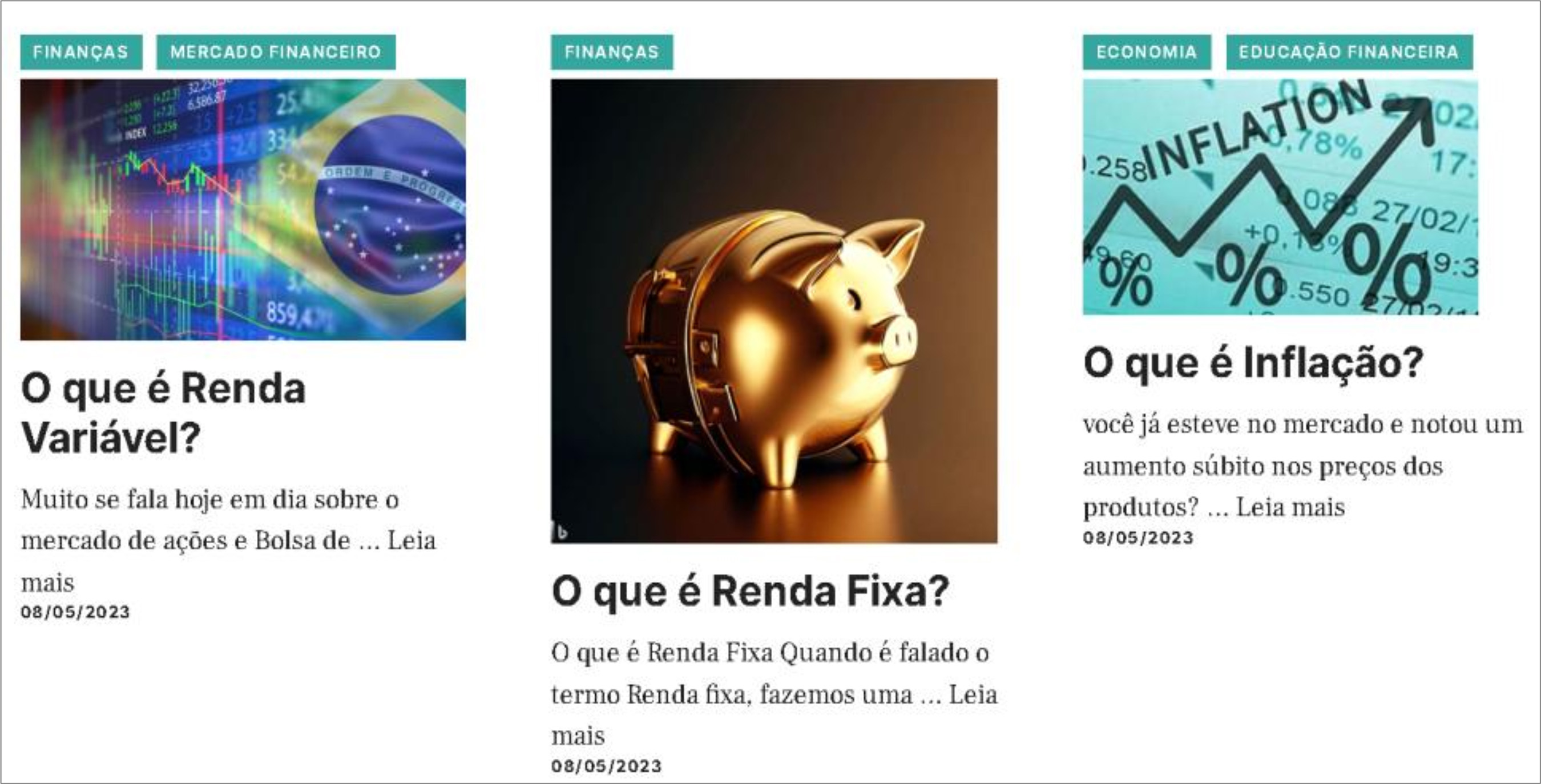 Textos sobre Educação Financeira nas escolas, Mercado Financeiro, Análise de Investimentos e Planejamento Financeiro Pessoal;