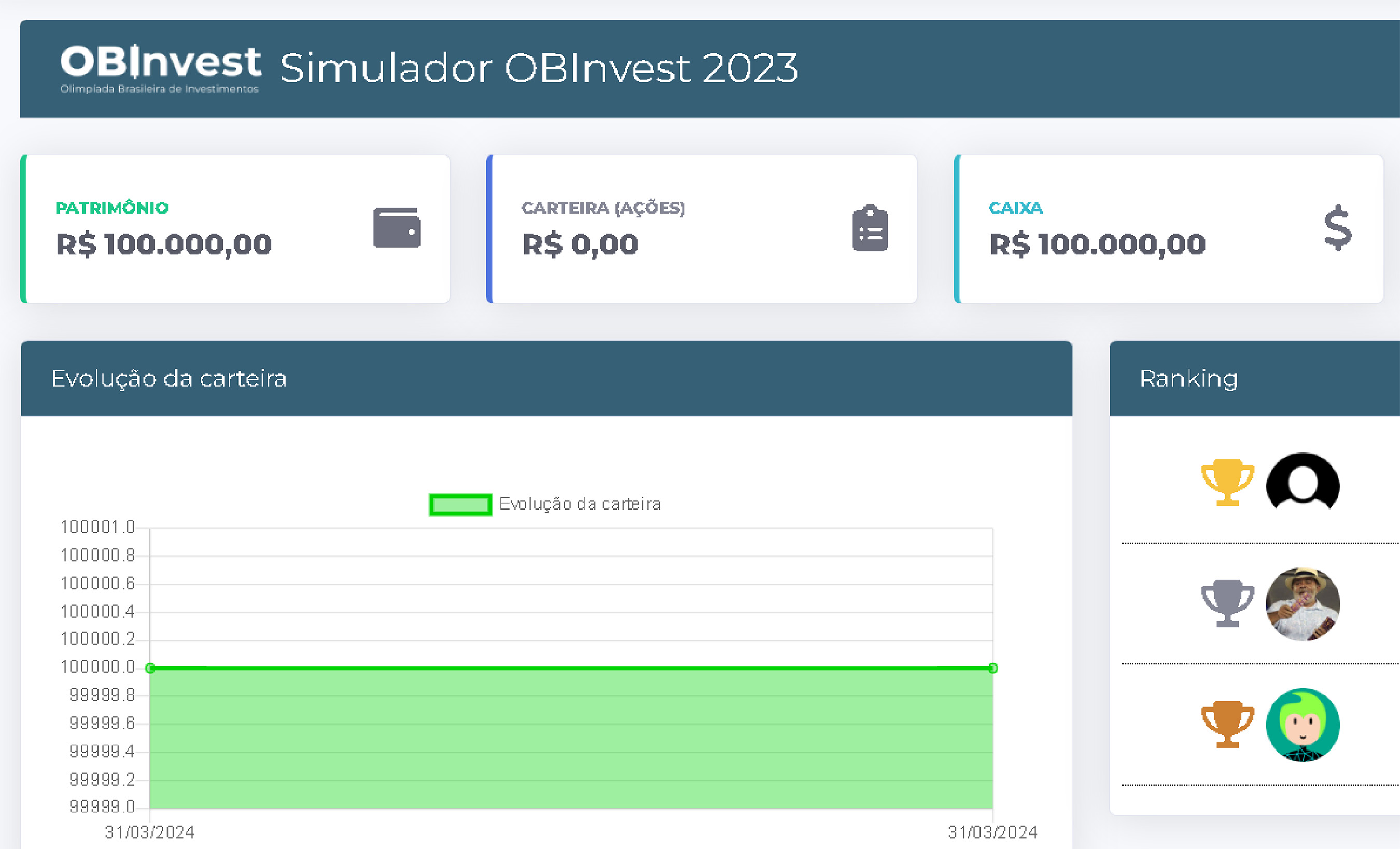 A 1ª Olimpíada Brasileira de Investimentos (OBInvest, 2021) foi realizada de forma totalmente virtual, contando com duas fases, a saber: