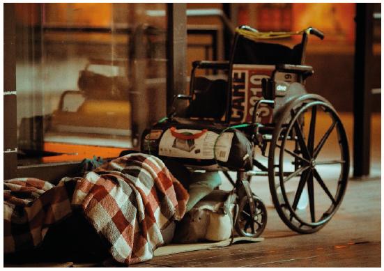 Tyson, J. (2020). [Fotografia Morador de rua e sua cadeira de rodas]. Unsplash. https://unsplash.com/pt-br/fotografias/saco-de-couro-preto-e-branco-na-mesa-de-madeira-marrom-7o9TIEUB59g [ Links ]