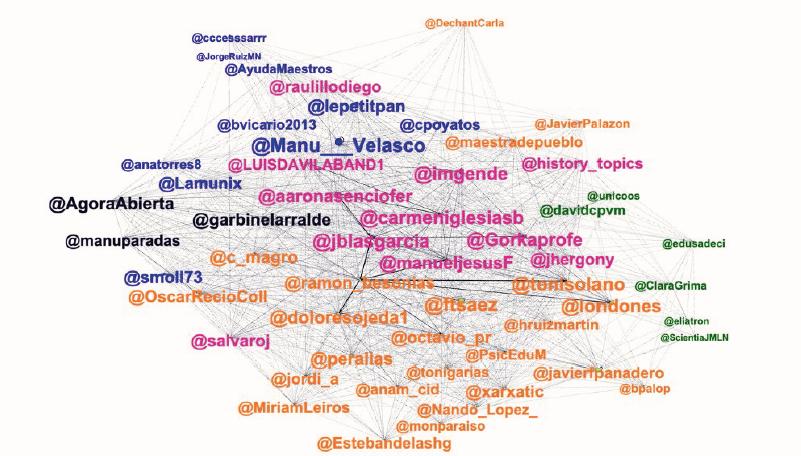 Figura 1 Representação de grupos de influenciadores na área da educação na Espanha