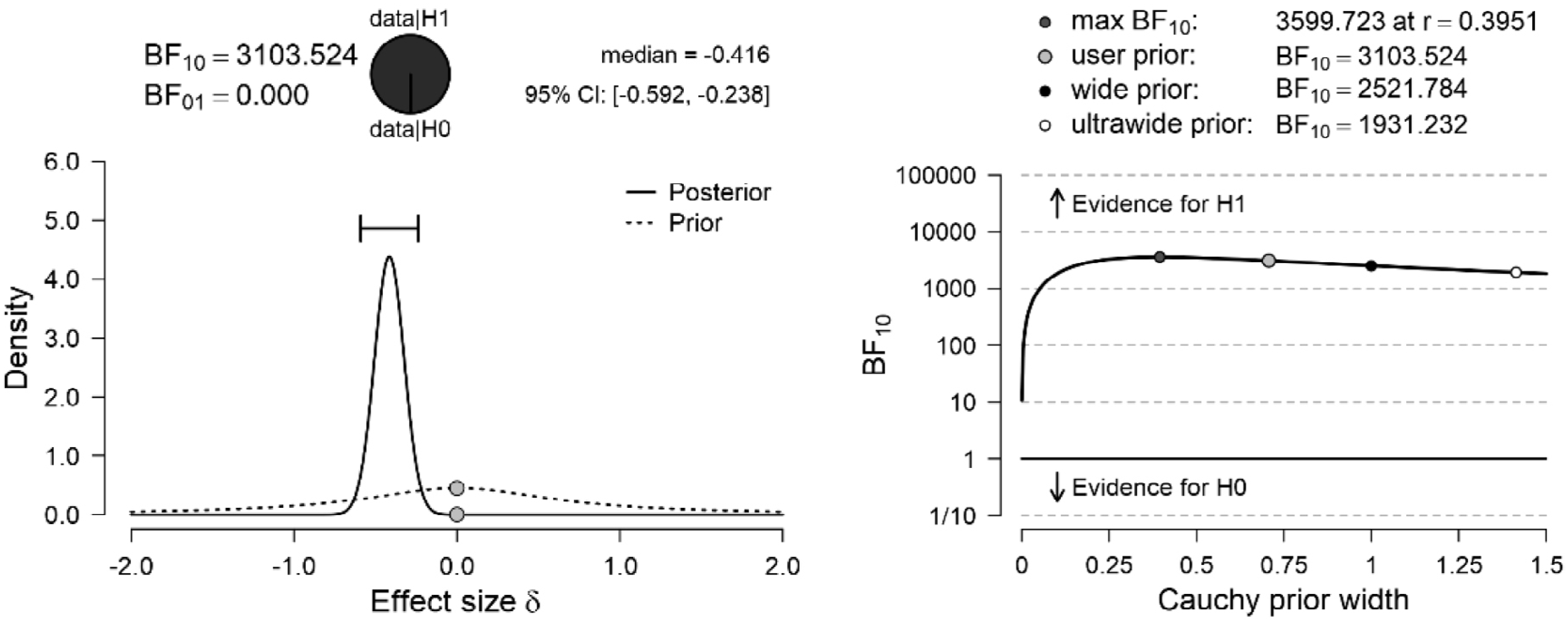 Table 14 Statistical inference of central tendency and Bayesian statistics: parameters of the Welch test for independent samples and Bayes factors for independent samples.