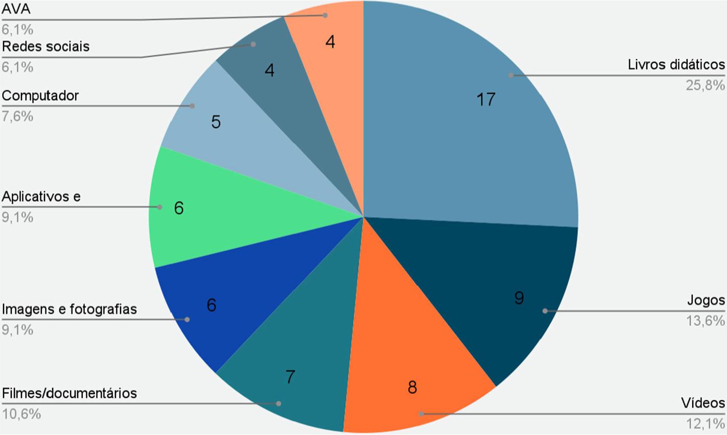 Nota-se que os livros didáticos foram as mídias educacionais mais frequentes (presentes em 17 ementas), considerando a perspectiva parcial e instrumental da preparação pedagógica. Entretanto, mídias digitais (por exemplo, vídeos, filmes, documentários, aplicativos, softwares etc.) também são mencionadas.