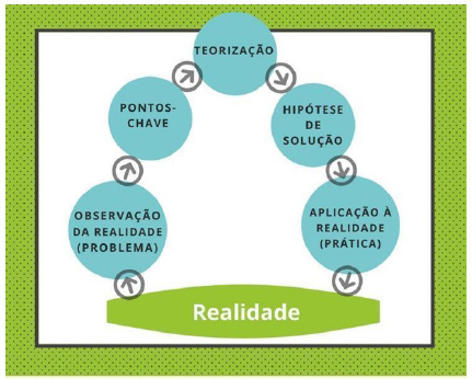 Ao aplicar as ações do Arco, faz-se um movimento que parte da realidade e a ela retorna “durante o processo de ensino por meio de práticas em sala de aula a partir de problemas reais relacionados aos conteúdos” (Guimarães Filho; Sinésio, 2021, p. 74).