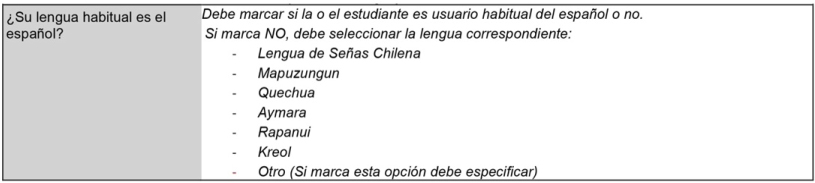 Figura 5 Consulta sobre lengua habitual de estudiante en documento Formulario Único de Ingreso