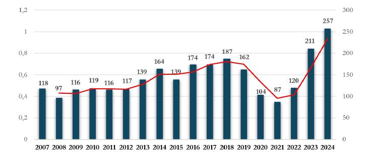 Nota: Os dados são referentes ao período de janeiro de 2007 a 30 de novembro de 2024.