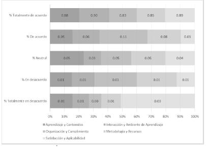 | 5 | Interacción y Ambiente de Aprendizaje | 0.00% | 0.16% | 0.79% | 2.38% | 96.67% |