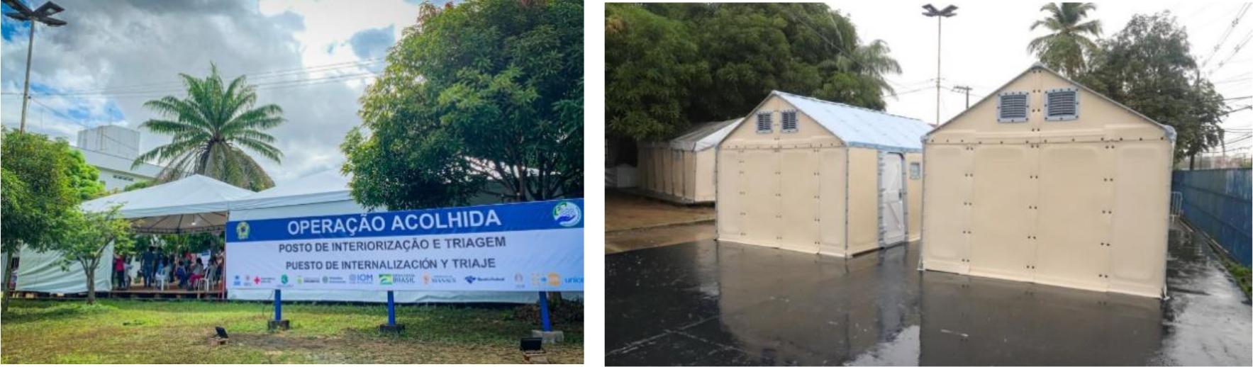 Diante dessa condição de vulnerabilidade, os venezuelanos que aqui estão precisam de proteção e acolhimento em virtude de que as pessoas em situação de refúgio encontram-se em condições difíceis de sobrevivência. Como forma de amenizar essa dramática realidade, o Estado brasileiro apresentou como resposta, a chamada Operação Acolhida - criada em março de 2018, em três cidades Boa Vista, Pacaraima e Manaus. Na cidade de Manaus, “O apoio [...] consiste no ordenamento do Terminal Rodoviário e estabelecimento de um Posto de Interiorização e Triagem, de forma semelhante à situação instalada em Roraima (RO)” (UNICEF, 2020, [online]), conforme identificado nas imagens que seguem.