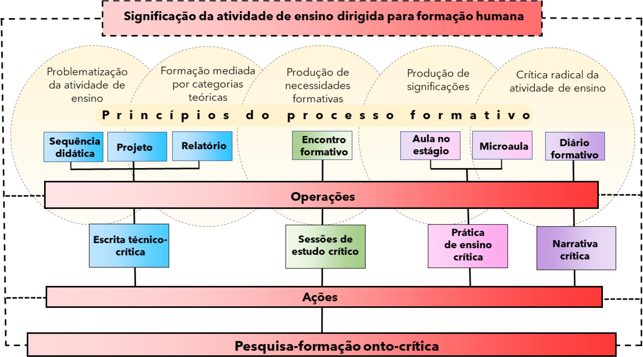 Assumir essa concepção é importante em face do caráter polissêmico que a pesquisa-formação tem se apresentado, caracterizado, entre outros aspectos, pela valorização do conhecimento tácito, com foco em problemas particulares de caráter imediato, em detrimento de questões coletivas (Longarezi; Silva, 2013). Dessa forma, visando superar essas questões e estabelecer coerência com as bases epistemológicas adotadas, os princípios e ações desenvolvidos foram embasados nos aportes teórico-metodológicos do materialismo histórico-dialético, da psicologia histórico-cultural e da pedagogia histórico-crítica.
