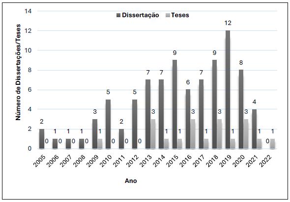 Fonte: Catálogo de Teses e Dissertações da CAPES (referência: novembro /2022). Elaboração: os autores (2022).
