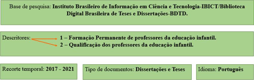 A busca das obras junto a BDTD, no período de 2017 a 2021, apresentou indicadores relevantes de pesquisas que versam sobre educação infantil, formação permanente e qualificação de professores. No entanto, ao se observar o foco das produções, muitas não possuíam aderência com a temática a qual se pesquisava. Assim, optou-se por delimitar o rastreio com o auxílio do recurso da Microsoft Ctrl – F, o que permitiu ter produções mais afinadas com os descritores (Formação permanente de professores da educação infantil e Qualificação dos professores da educação infantil), em atendimento ao objetivo desta pesquisa.