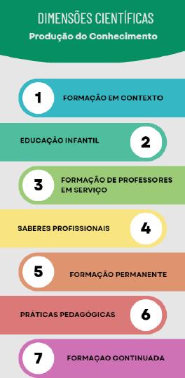 As outras duas produções científicas, do conjunto de sete, discutem a formação permanente ou continuada de professores da educação infantil a partir da organização e oferta de Secretarias e Departamentos Educacionais de determinadas regiões, enfatizando a qualificação dos professores de educação infantil de modo mais amplificado no contexto da gestão educacional.