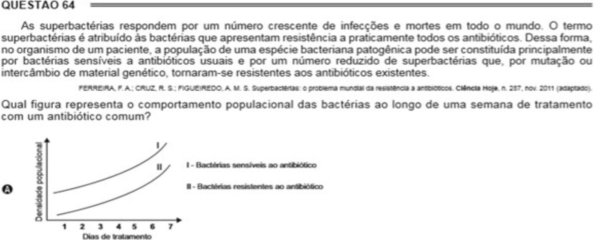 Dentro desse contexto, foram encontradas 32 questões que tinham como intencionalidade a reflexão de aspectos éticos e valores humanos atribuídos na resolução das mesmas. Essas questões relacionavam procedimentos ou conhecimentos genéticos à produção de medicamentos (figura 10), ao melhoramento de tratamentos ou à prevenção de doenças, à identificação de paternidade, à doação de sangue, à importância da preservação da biodiversidade e à evolução e diversidade humana (figura 11).