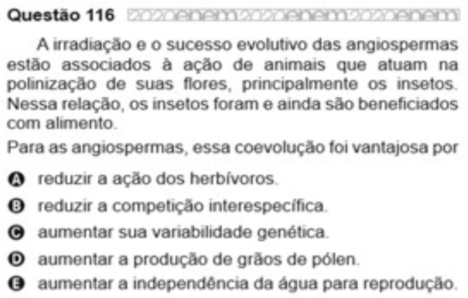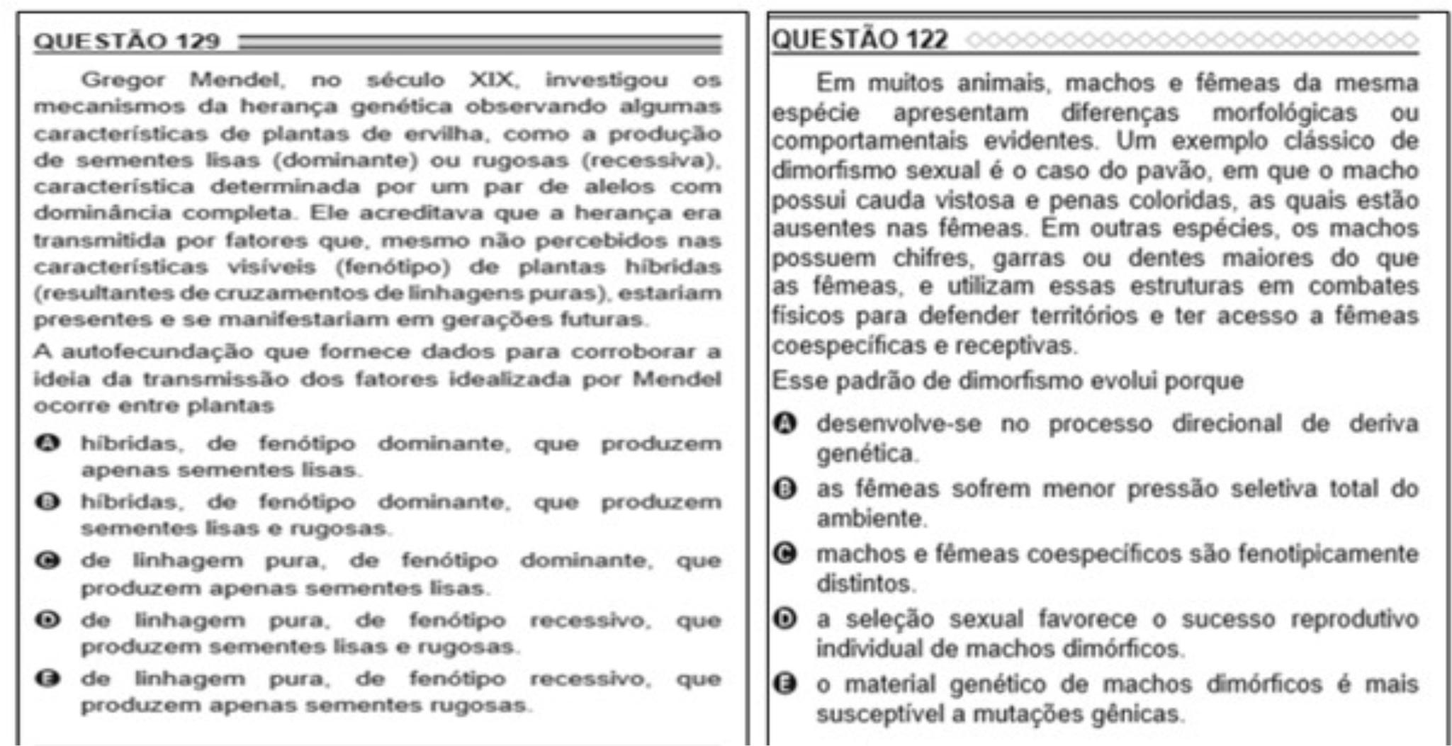 Figura 4 Questão 129 do ENEM 2018 - 2ª aplicação: conteúdo interdisciplinar - história da Ciência, Botânica e Reprodução. Questão 122 do ENEM 2022: conteúdo interdisciplinar - Biologia evolutiva, Ecologia e Reprodução