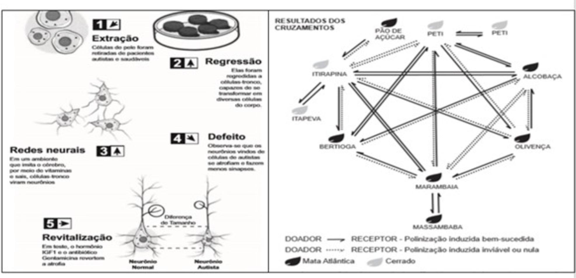Figura 12 Desenho esquemático com signos: terapia gênica - Questão 77 do ENEM 2013 - 2ª aplicação. Cruzamentos entre espécies de orquídeas de diferentes regiões - especiação. Questão 120 do ENEM 2018