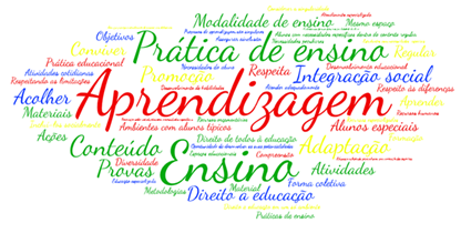 Na figura 3 encontramos termos em comum aos citados nos discursos dos docentes (crianças com deficiência, Necessidades Educativas Especiais e Educação direito de todos). Com isso, podemos observar que, ainda que os docentes tenham conhecimento do conteúdo destes documentos, são conhecimentos sem muito aprofundamento. Isso pode ser observado ao realizarmos uma análise profunda destes resultados, pois fica evidente que uma parcela significativa de estudantes fica excluída das ações inclusivas pelos docentes.