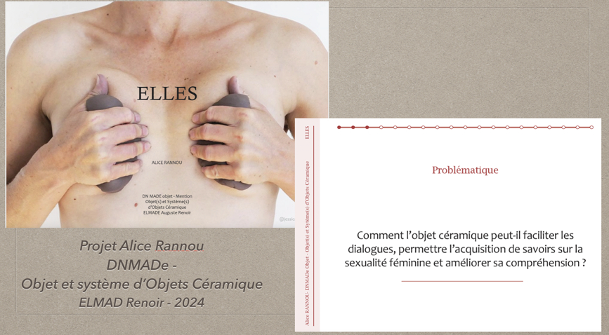L’émancipation n’est toutefois pas, à proprement parler, une simple maïeutique socratique et c’est ce que peut montrer le deuxième projet, celui d’une étudiante qui a réfléchi au rôle de la céramique, comme matériau et comme objet, dans l’appréhension de la sexualité féminine. La question que s’est posée l’étudiante était de savoir comment l’objet céramique pouvait contribuer, par sa sensualité intrinsèque, à faire dialoguer sur ce sujet.