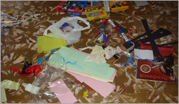 Figura 1 Material usado na produção das caixinhas de bem guardado no chão da sala durante o encontro