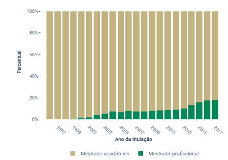 Figura 2 Números de titulação de mestrados acadêmicos e profissionais entre 1999-2017.