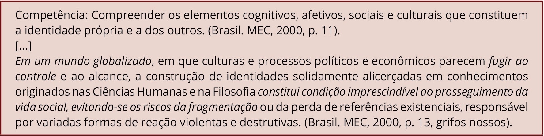 Fonte: Brasil. MEC (2000, p. 11, grifos nossos)