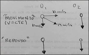 A2, em certo momento de sua fala, afirma que “se o observador está se movendo com velocidade constante tudo se comporta como se ele estivesse em repouso”. Essa afirmação de A2 refere-se a uma demonstração fundamental acerca de seu entendimento (implícito ou explicito) sobre o princípio da relatividade galileano. Na sequência, A1 prossegue afirmando que isso é verdadeiro apenas para referenciais inerciais, que são aqueles que não possuem aceleração.