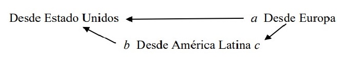 Por otra parte, deberemos adoptar ante Estados Unidos una perspectiva diferente a la que han adoptado por ejemplo un A. de Tocqueville, M. Weber, Adorno o H. Arendt (desde Europa, flecha a), un S. Huntington (desde el mismo Estados Unidos), o desde Europa C. Offe41. Nuestra interpretación, desde América Latina (flecha b), se situará em otro ángulo del triángulo, y podrá corregir la visión europea (flecha c) todavia eurocêntrica.