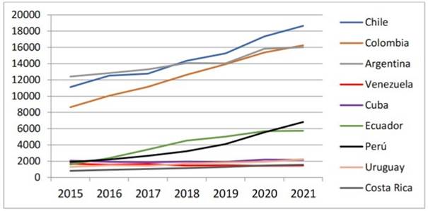 Fuente: Datos del Portal Scimago (2021). Procesamiento próprio