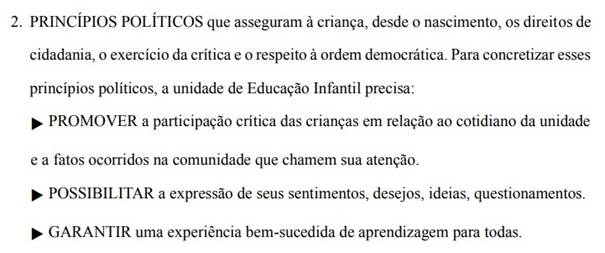 Ao apresentar os princípios fundamentais da Educação Infantil, presentes tanto nas Diretrizes Curriculares Nacionais para a Educação Infantil (DCNEI) quanto na BNCC, encontramos, como demonstrado nas Figura 1, Figura 2 e Figura 3:
