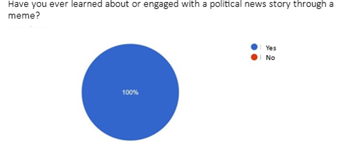 When asked whether they had ever learned about or engaged with political news through memes, the responses indicated a comprehensive role of memes (Figure 2) in the communication and dissemination of political news. These data point to a trend of political communication mediated by memes, reinterpreted through online playfulness and discursive humor, yet tending to bridge society and the political sphere through ideologically and meaning-laden jokes, while also fostering an environment of activism, persuasion, and collective engagement.
