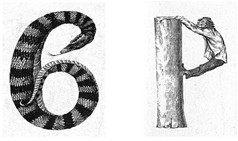 Cabe esclarecer que as estampas de letras e dos números apresentados seguem a proposta de Castilho (1853), que associou os seus formatos a alguma imagem com remissão a uma historieta, base de sua apresentação para os alunos. Há toda uma liturgia proposta para apresentação das letras às crianças; e Martins (1854a, p. 12) a recupera, transcrevendo os encaminhamentos explicitados no método Castilho, incluindo a posição do mestre e dos estudantes, os gestos de cada um, o ritmo e a ordem com que as letras deveriam ser ensinadas.