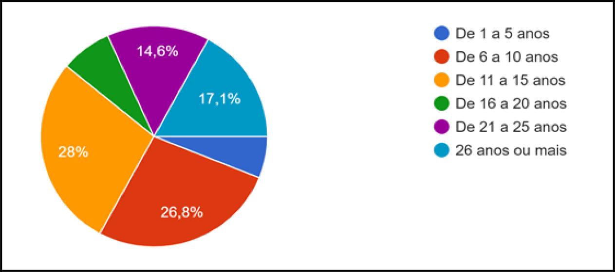 Os participantes da pesquisa, no que diz respeito à relação tempo de serviço e funções profissionais, responderam, conforme apresentado no Gráfico 3 a seguir: