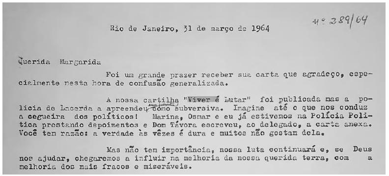 Carlos Rodrigues Brandão, em suas cartas6, relata que muitos educadores continuaram a trocar correspondências para manter viva a Educação Popular. Embora muitas dessas cartas tenham sido destruídas, pesquisas recentes têm resgatado parte desse patrimônio histórico. Mesmo sob repressão, instituições como o MEB e a ala progressista da Igreja Católica continuaram a atuar de forma discreta, subvertendo o modelo autoritário imposto pela ditadura. O papel fundamental da ala progressista7 do episcopado brasileiro foi reafirmado pelo Presidente João Goulart em 1963, que reconheceu a importância do MEB para a educação das populações subdesenvolvidas (Raposo, 1985).
