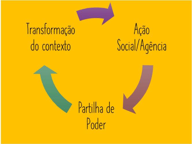 Rodrigues (2020), para evitar o uso indiscriminado do termo participação, procura dar inteligibilidade a este conceito, elencando alguns elementos que considera como constitutivos da participação e que se interconectam: ação social/agência ( Coutinho, 2010; Delalande, 2014; James, 2009; James; James, 2012; James; Prout, 1990; Prout, 2010; Weber, 2012; Wyness, 2014), partilha de poder e transformação do contexto na direção do real interesse das crianças. (Fernandes, 2009; Fernandes; Tomás, 2011; Giddens, 2000; Hultgren; Johansson, 2018; Lansdown, 2010; Sarmento, 2012; Tomás, 2011).