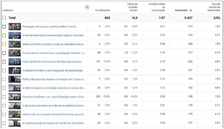 Essas inovações estão dando resultados desde o primeiro instante até agora com a criação do Canal RIESUP no YouTube. Seguem abaixo os dados estatísticos de acesso e visualizações do canal: