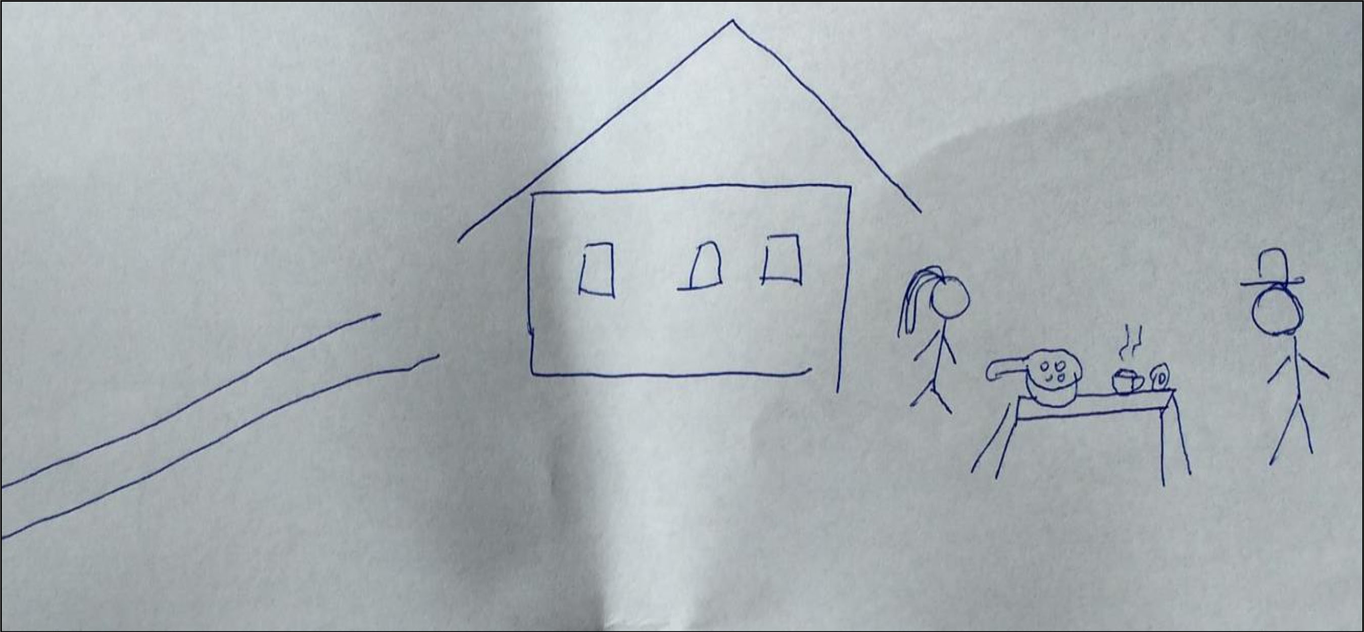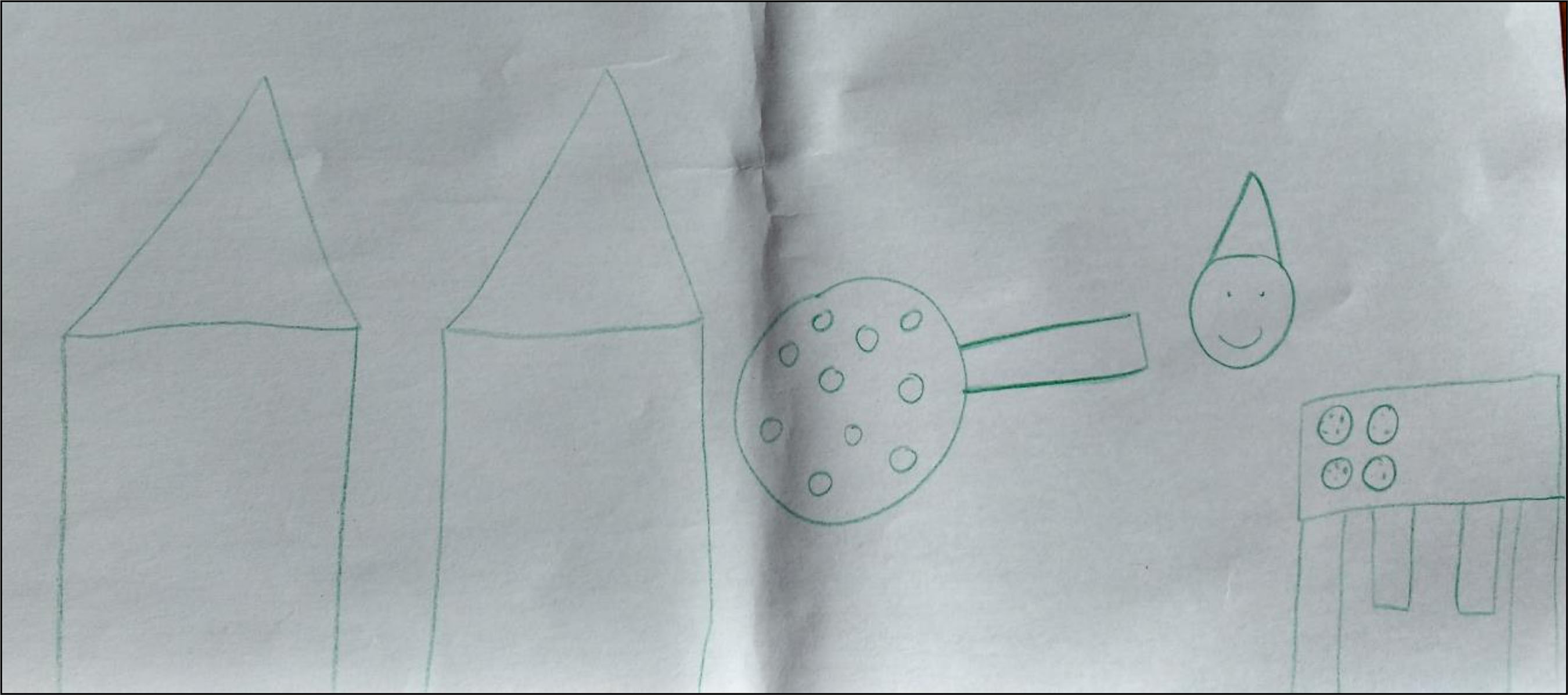 Foi dada uma folha de sulfite a cada um dos componentes do grupo e materiais coloridos como giz de cera e lápis de cor para que realizassem a atividade do mesmo modo que seria proposto aos alunos. Algumas das produções que obtivemos podem ser observadas nas Figuras 4, 5 e 6.