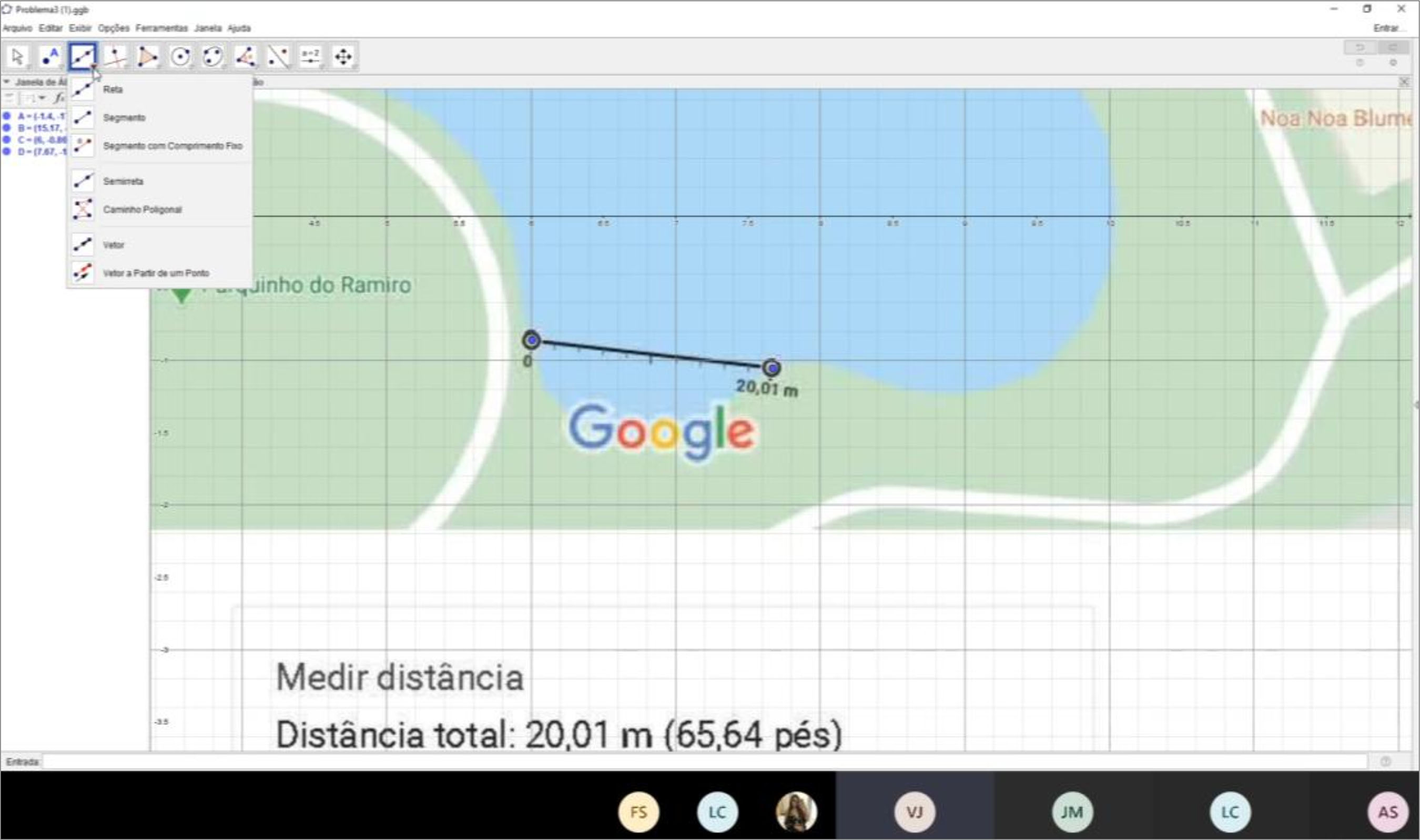 Essa discussão aconteceu com os estudantes compartilhando a tela GeoGebra, que estavam usando para resolver o problema, conforme ilustra a Figura 7.