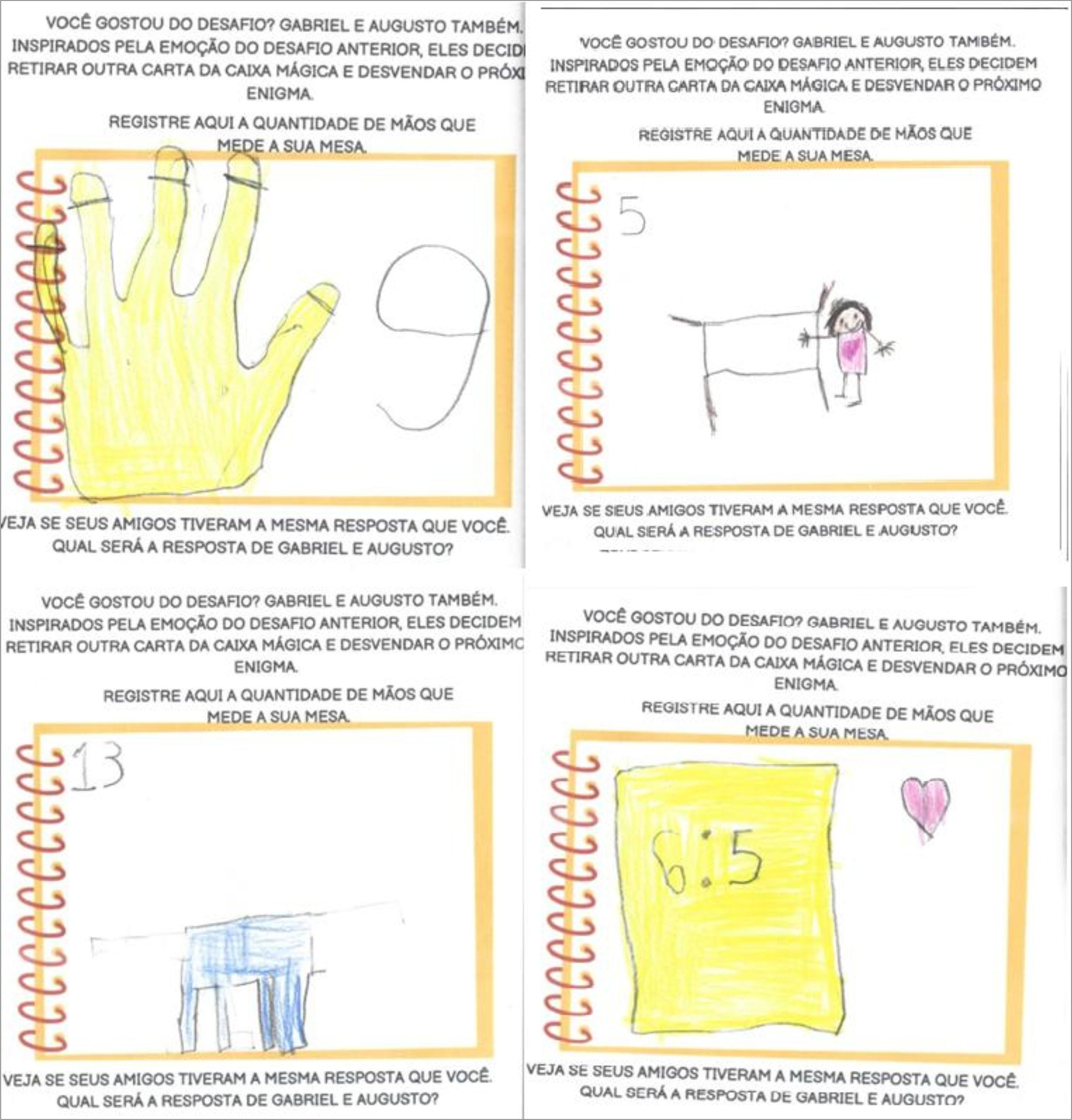 Importante mencionar que, após resolverem o problema proposto, as crianças demonstraram grande interesse em retornar à história para conferir se os personagens tinham realizado a tarefa da mesma forma, revelando o vínculo que se formou entre elas, os personagens e os problemas apresentados.