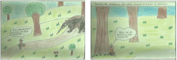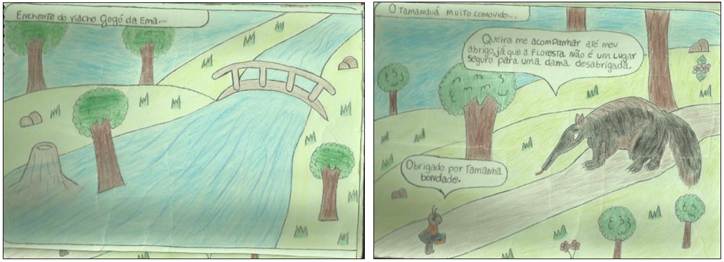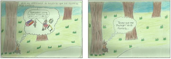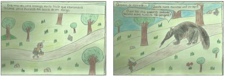 Imagem 1 e 2 - História em quadrinhos produzida pela aluna M2.