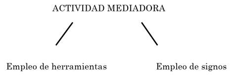 Segundo Vygotski (1995), o processo de formação das funções psíquicas superiores é um processo mediado, sendo a palavra o núcleo central dessa mediação, a unidade de análise da consciência. O autor compreendia que a relação do homem com o mundo não ocorre diretamente, mas é uma relação mediada por signos, similar ao uso de uma ferramenta no trabalho: “Como ya hemos dicho, la similitud entre el signo y la herramienta se basa en su función mediadora común en ambos. Por ello, y desde un punto de vista psicológico, pueden incluirse ambos en una misma categoria” (VYGOTSKI, 1995, p. 93). O esquema apresentado a seguir foi elaborado por Vygotski (1995, p. 93) para expor a similitude de atividade mediadora entre o emprego de ferramentas e de signos: