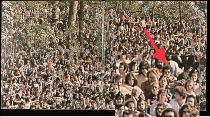 Figura 2: Contracapa do disto disco "Geraes", de Milton Nascimento, gravado em 1976. Na imagem, Ori está entre o público que assiste ao show de Milton Nascimento na USP/SP, no inícioda década de 1970.